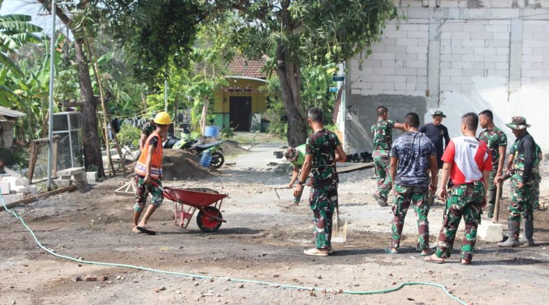 Wujudkan Fasilitas Olahraga Nyaman, Satgas TMMD Kodim 0816/Sidoarjo Bangun Lapangan Voli